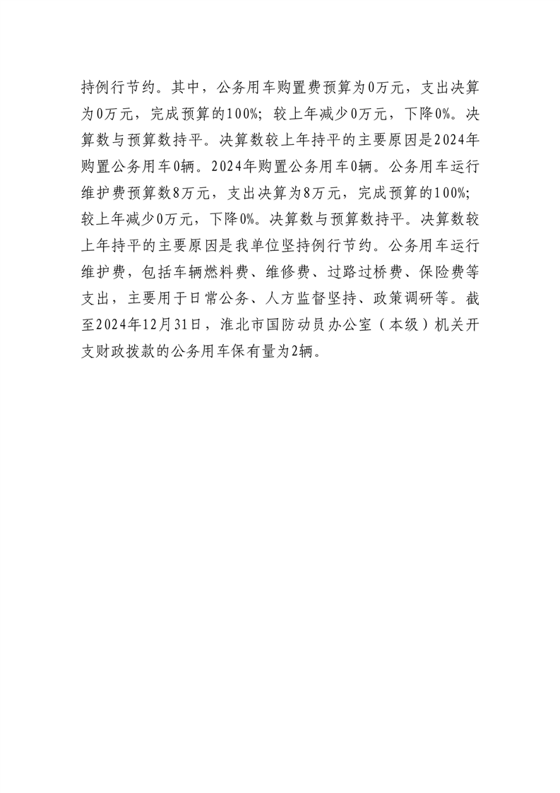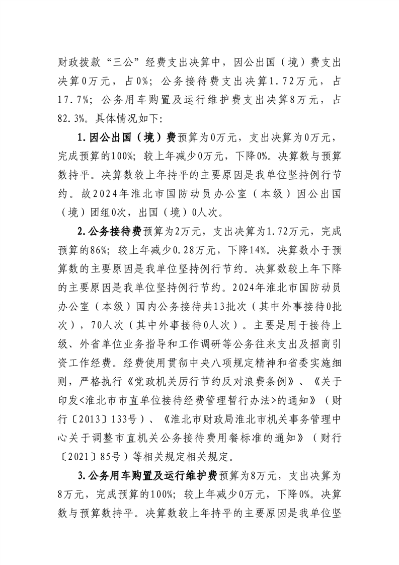 淮北市国防动员办公室(本级)2024年度一般公共预算财政拨款“三公”经费支出决算公开