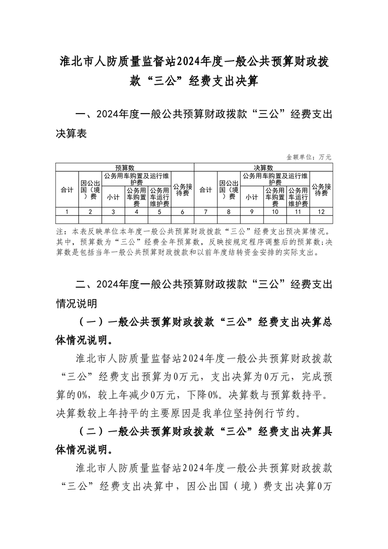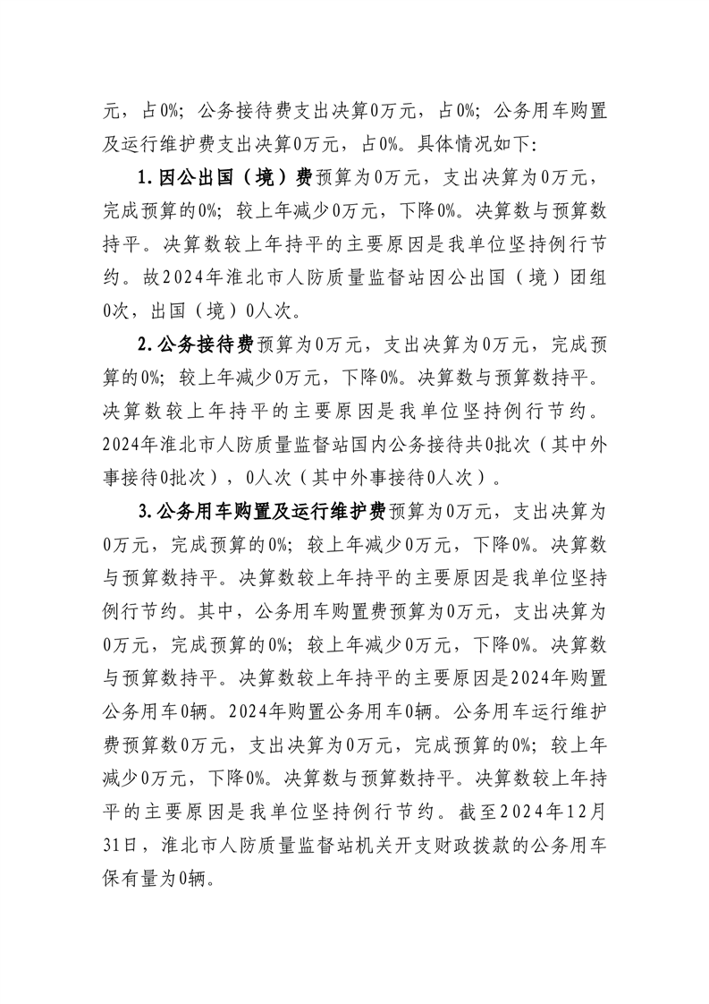 淮北市人防工程质量监督站2024年度一般公共预算财政拨款“三公”经费支出决算公开