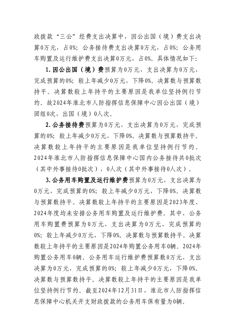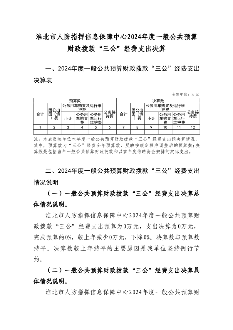 淮北市人防指挥信息保障中心2024年度一般公共预算财政拨款“三公”经费支出决算公开