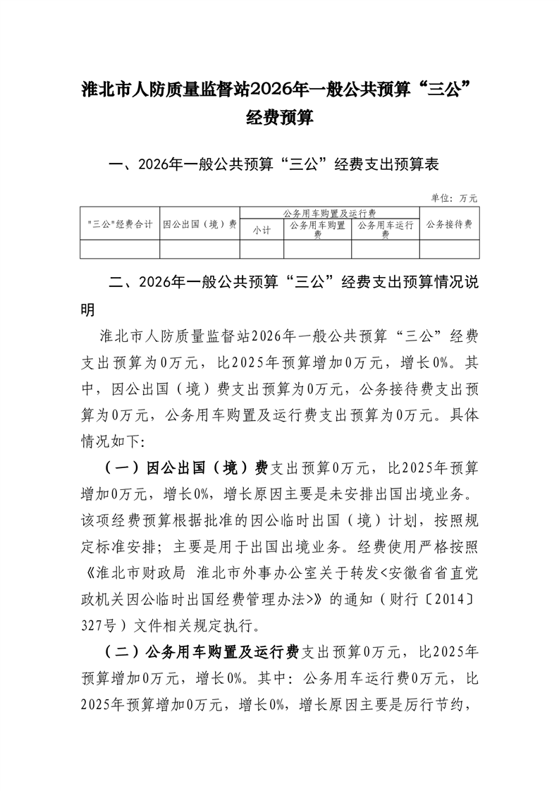 淮北市人防工程质量监督站2026年一般公共预算“三公”经费预算