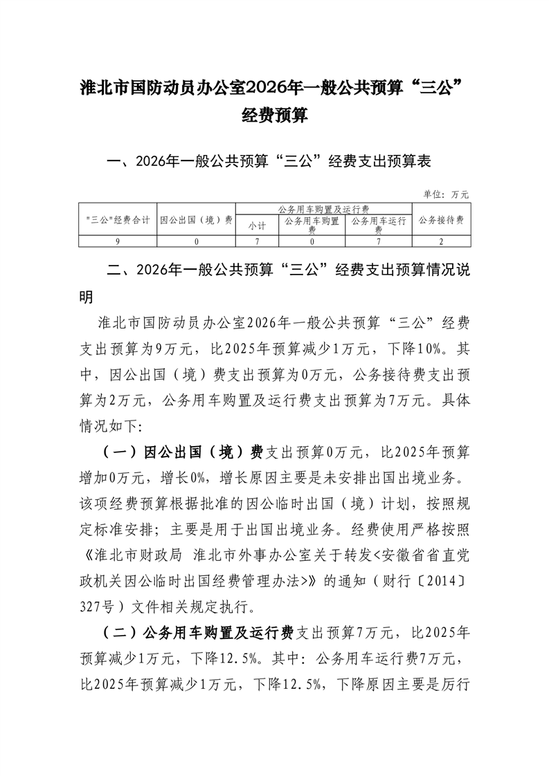 淮北市国防动员办公室(本级)2025年一般公共预算“三公”经费预算